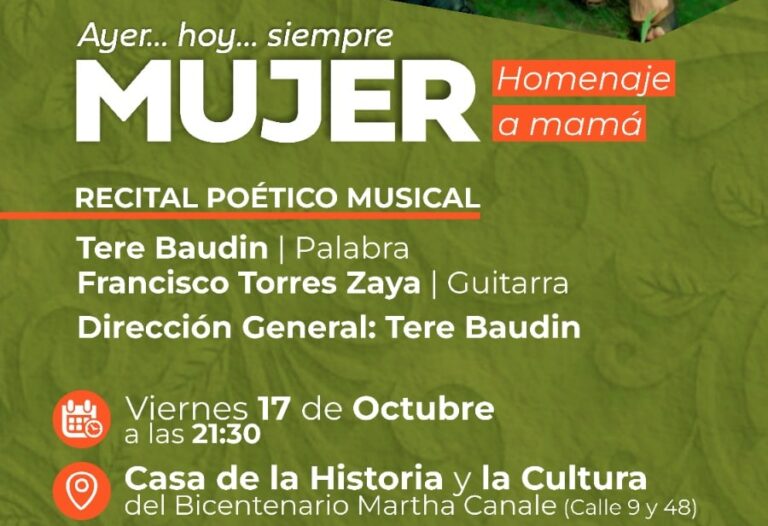 “Ayer…hoy…siempre MUJER”: un homenaje poético-musical a las madres El próximo viernes 17 de octubre a las 21:30 horas, la reconocida